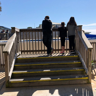 This is a great place to eat. They have a great view of the water, good kids menu, fun places with fun drinks for kids and adults in fun glasses. This is 2 floors but they do have an elevator.