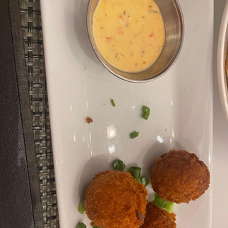 We had the iron steak, salmon, salmon tartare, mushroom risotto and apple crème brûlée for dessert.